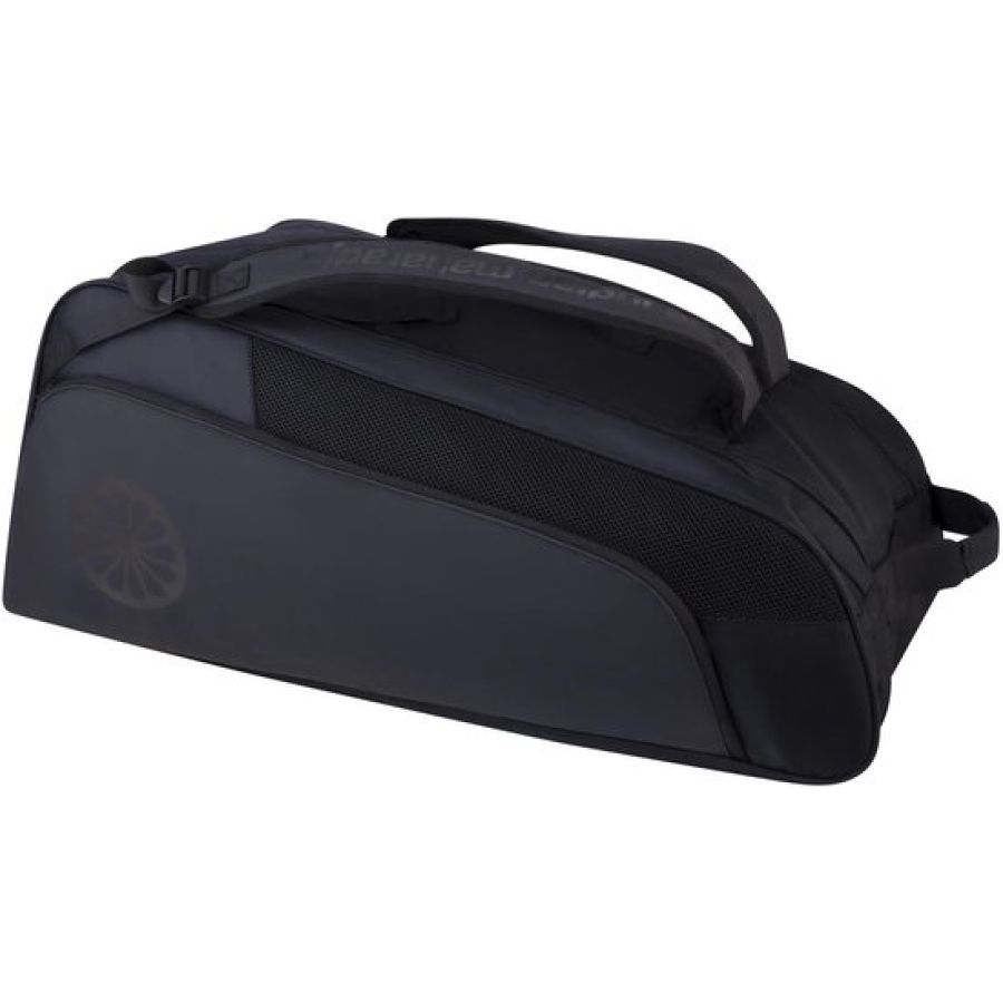 The Indian Maharadja Tennis Backpack TCMR 8 is een ruime en professioneel uitgevoerde tennistas, ontwikkeld voor fanatieke tennissers. De tas is gemaakt van hoogwaardig 900D polyester in combinatie met slijtvast en waterafstotend tarpaulin, waardoor hij geschikt is voor intensief gebruik. Met een inhoud van circa 46 liter biedt de TCMR 8 ruimte voor 8 tot 9 rackets en al je overige tennisuitrusting. De tas heeft twee aparte hoofdcompartimenten, waarvan één is voorzien van isothermisch materiaal om je rackets te beschermen tegen hitte en kou. Beide compartimenten zijn uitgerust met stevige dubbele ritsen. Daarnaast beschikt de tas over een apart schoenenvak en twee ruime zijvakken voor accessoires, waardevolle spullen of andere benodigdheden. De TCMR 8 kan worden gedragen met de twee handvatten of als rugzak, dankzij de verstelbare en gewatteerde schouderbanden. Dit zorgt voor comfortabel en ergonomisch dragen, of je nu naar de baan fietst of een toernooi bezoekt. The Indian Maharadja Tennis Backpack TCMR 8 is een functionele, ruime en duurzame tennistas voor spelers die veel meenemen en geen concessies willen doen aan kwaliteit.